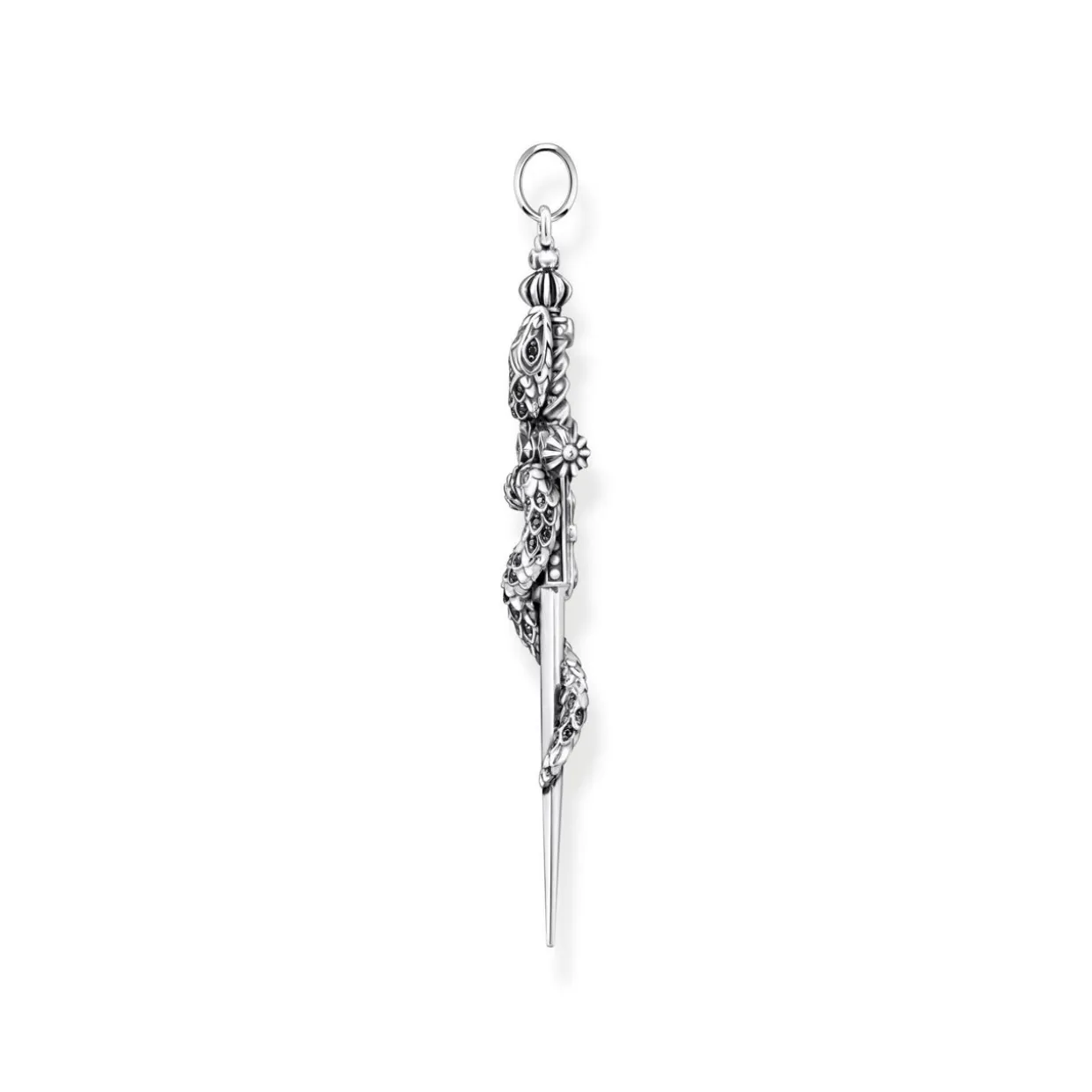 - Snake and sword design, scales designed in a 3D look with blackened 925 sterling silver, black zirconia stones accentuate the eyes and scales, raised detailing on the sword