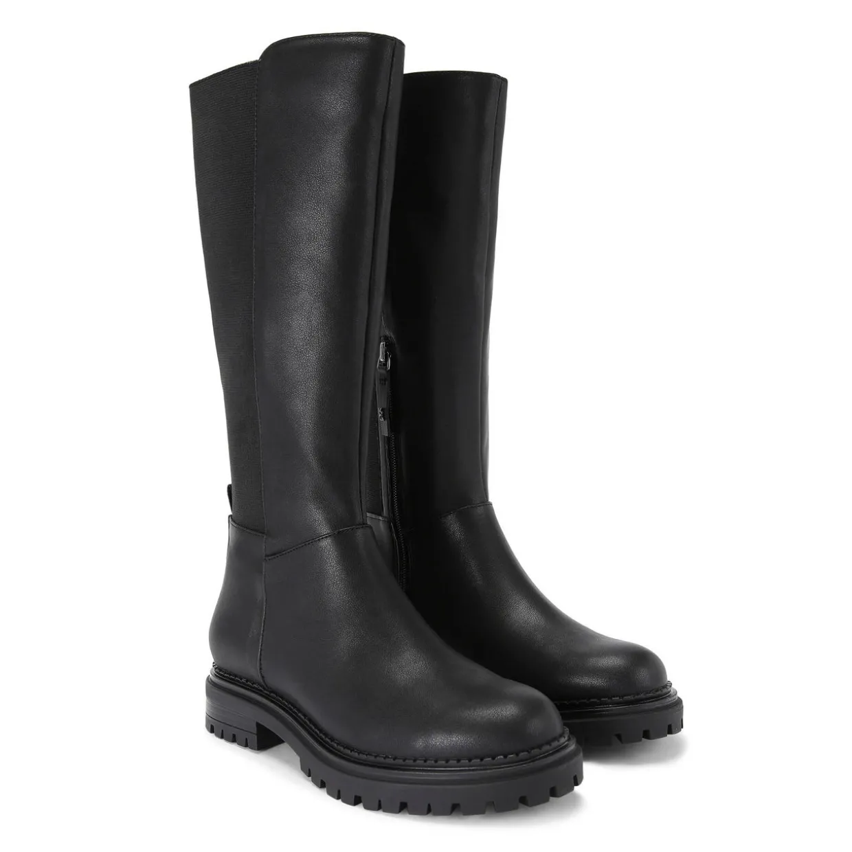 - Calf length, elasticated back panel, inside zip fastening, low heel, round toe