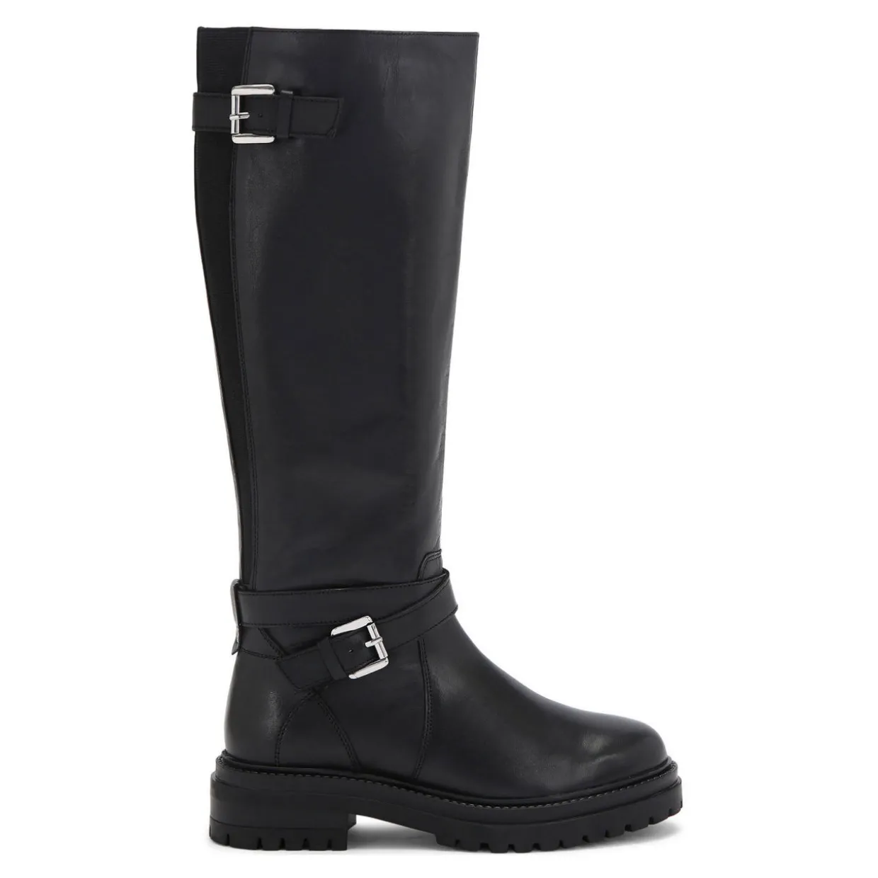 - Leather upper, two ankle straps, silver-tone buckle fastenings, two elasticated panels, side zip fastening, round toe