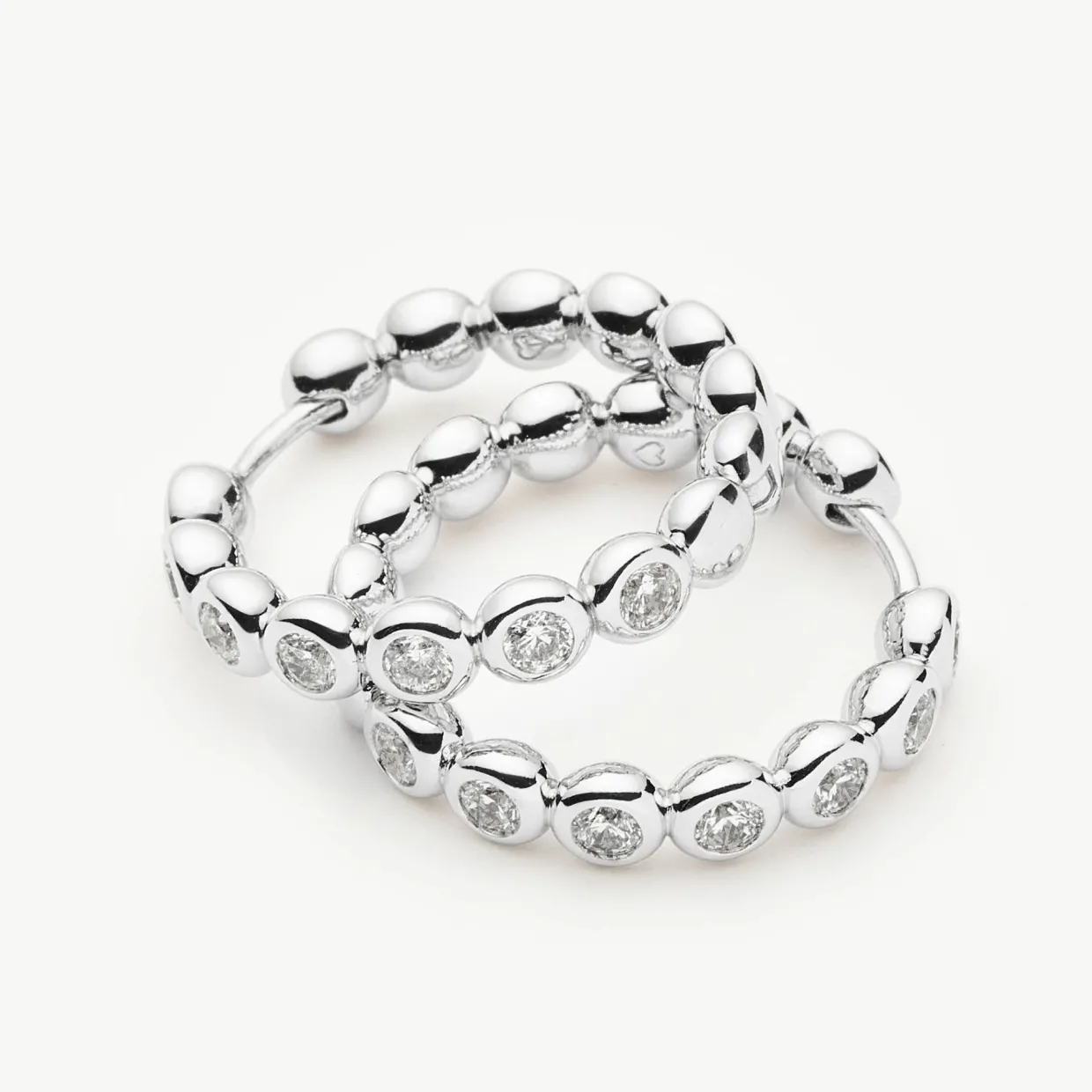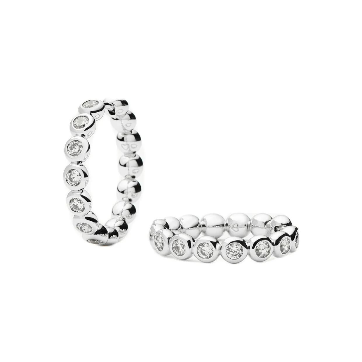 - Tennis collection piece, medium size, hoop style, beaded detailing, cubic zirconia embellishment, latch back fastening
