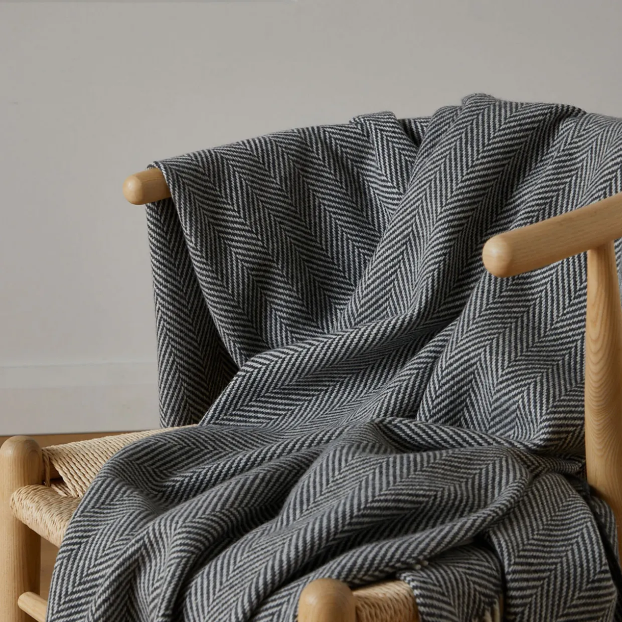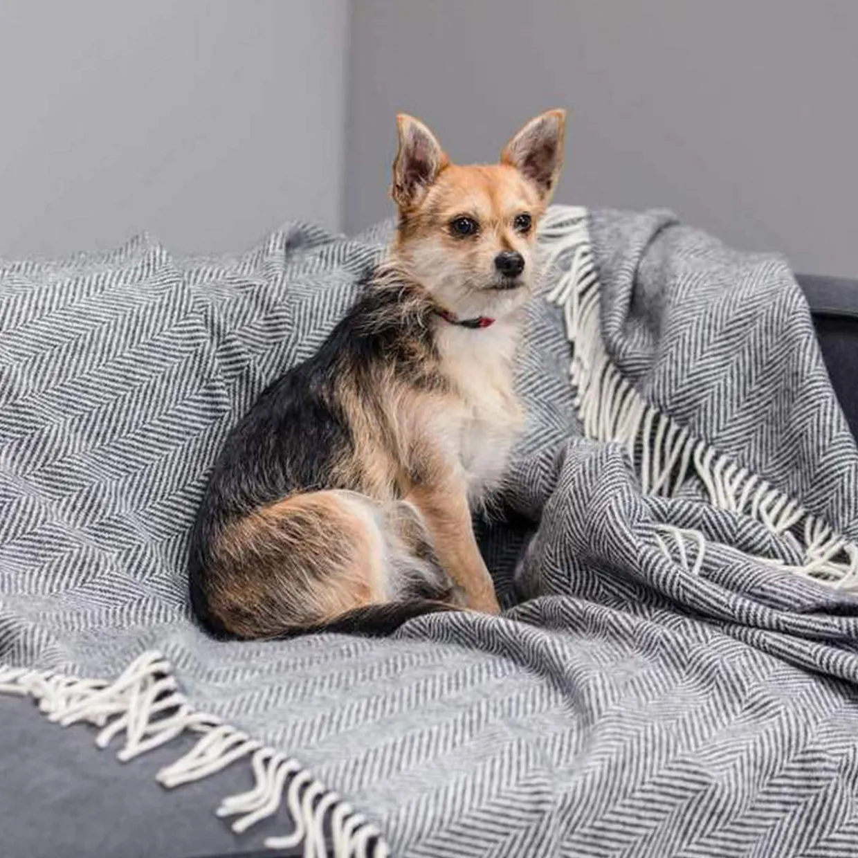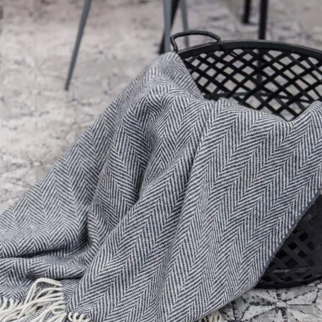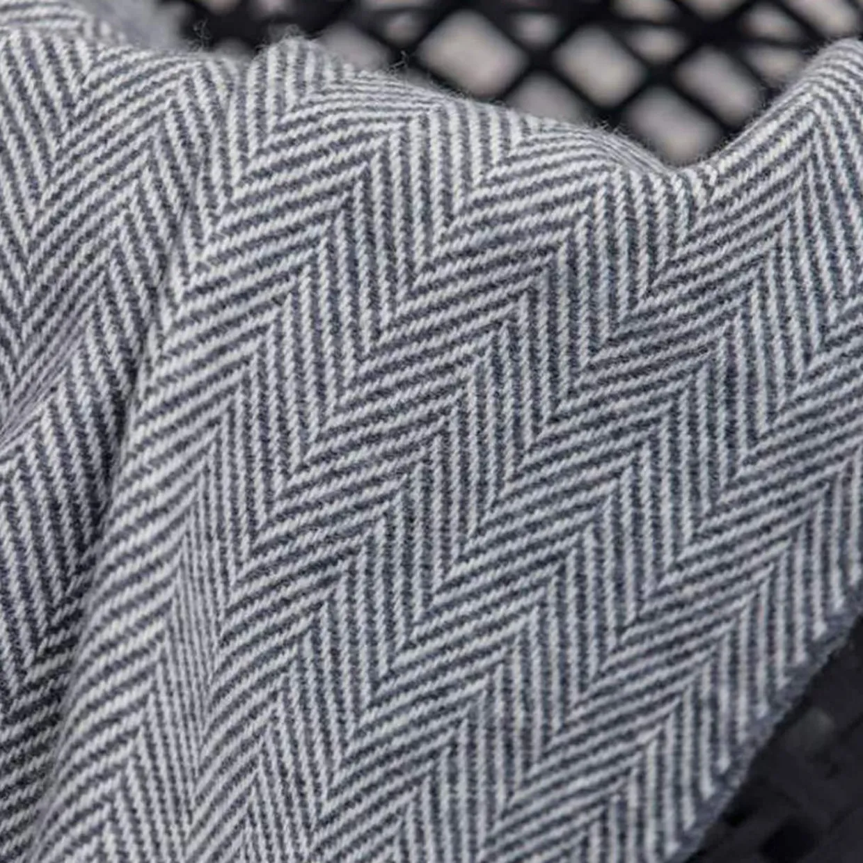 - Herringbone pattern, woven fringed trims, soft touch, logo badge