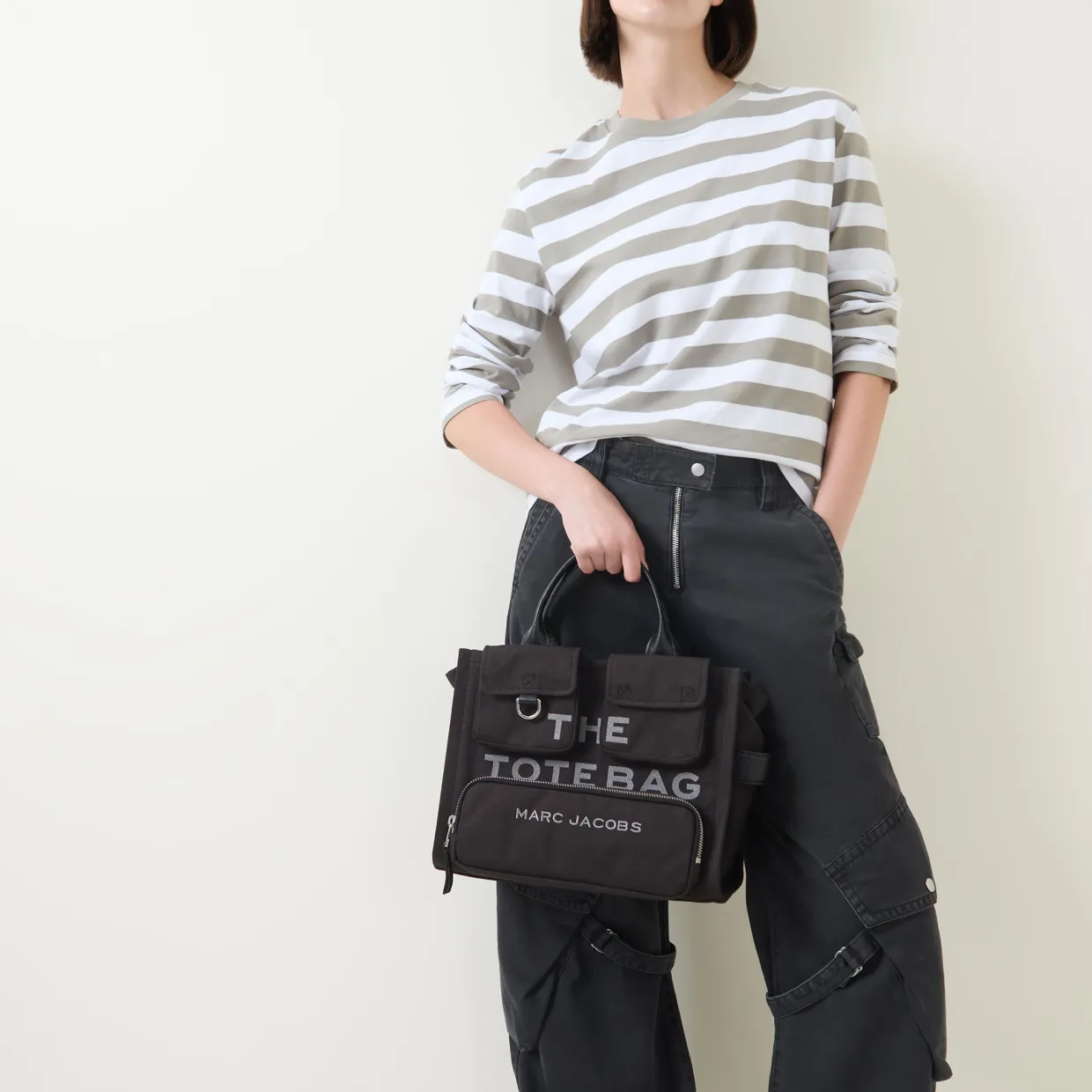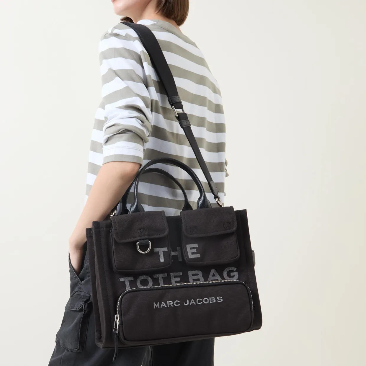 - Cargo pockets, logo detail, top handles, top-zip fastening, silver-toned hardware, lobster fastening, boxy shape