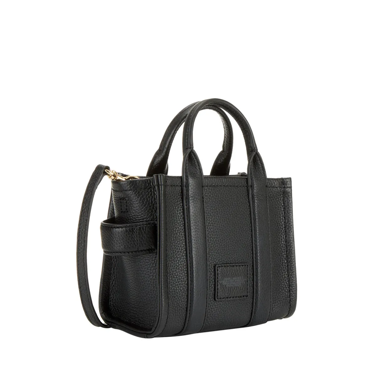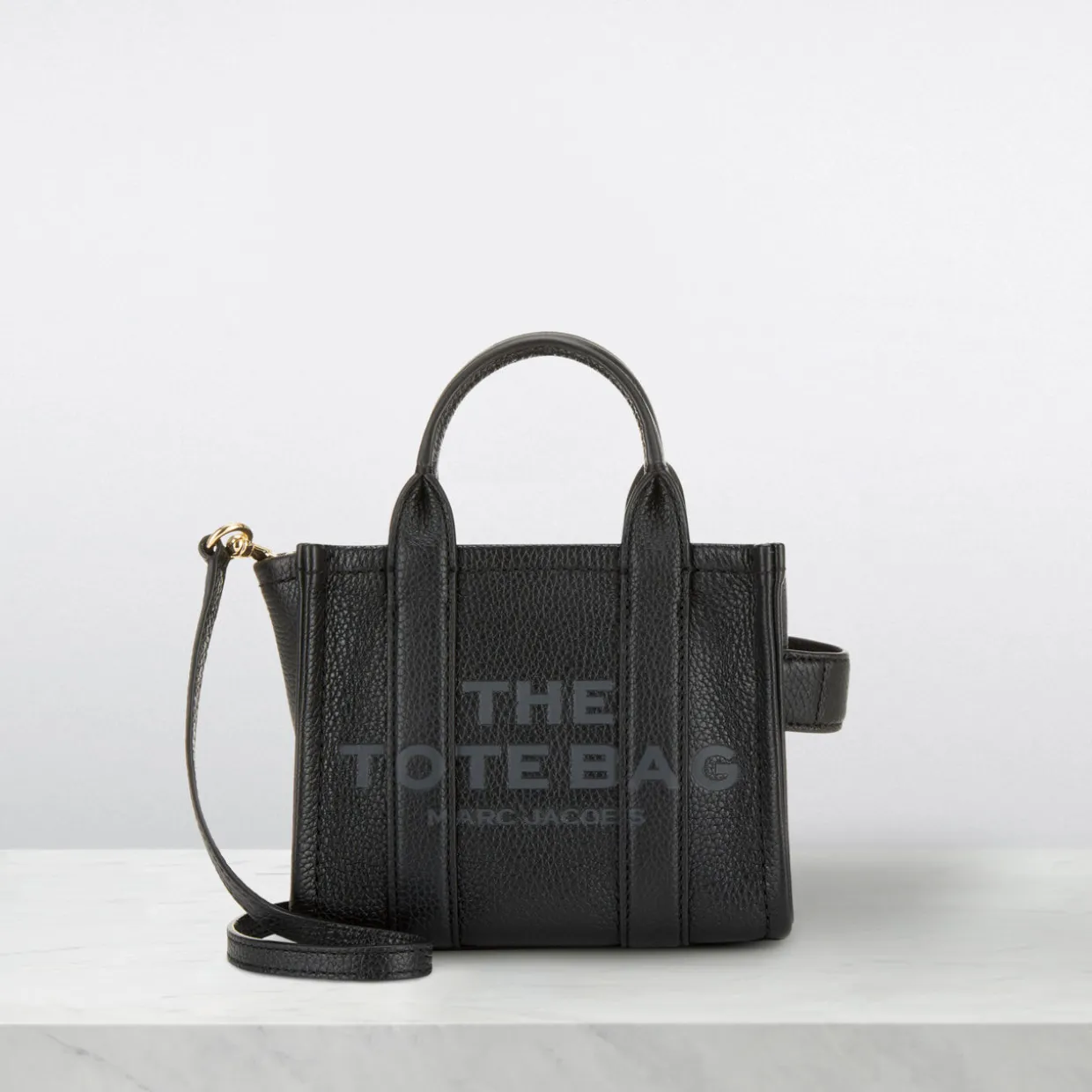 - Boxy shape, zip-top fastening, logo detail, top handle, removable strap, gold-toned hardware
