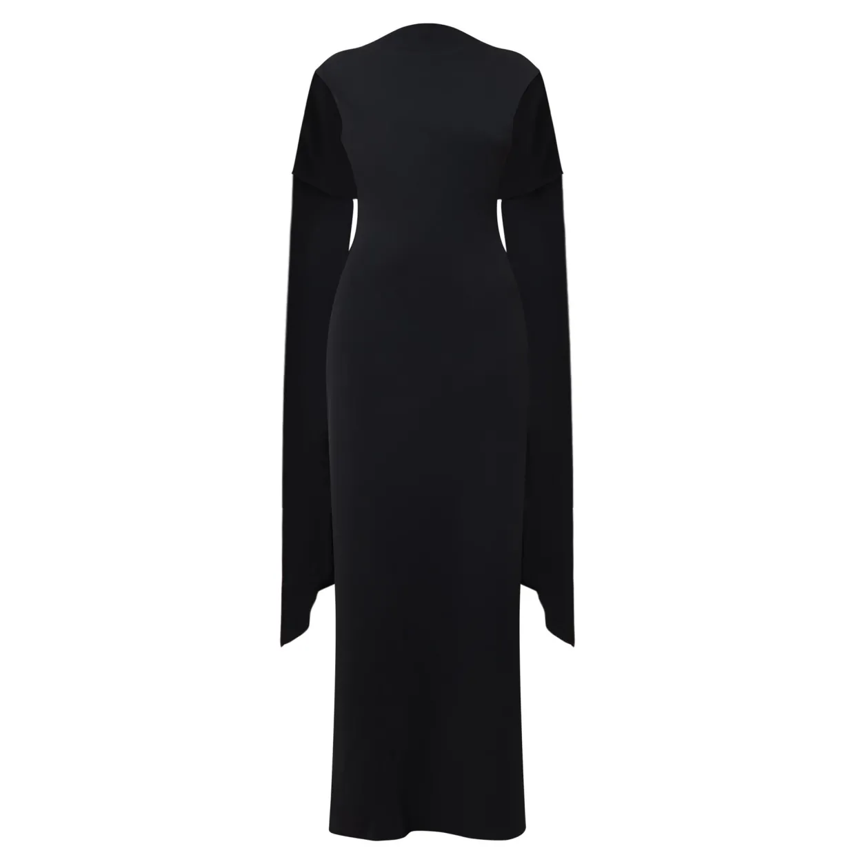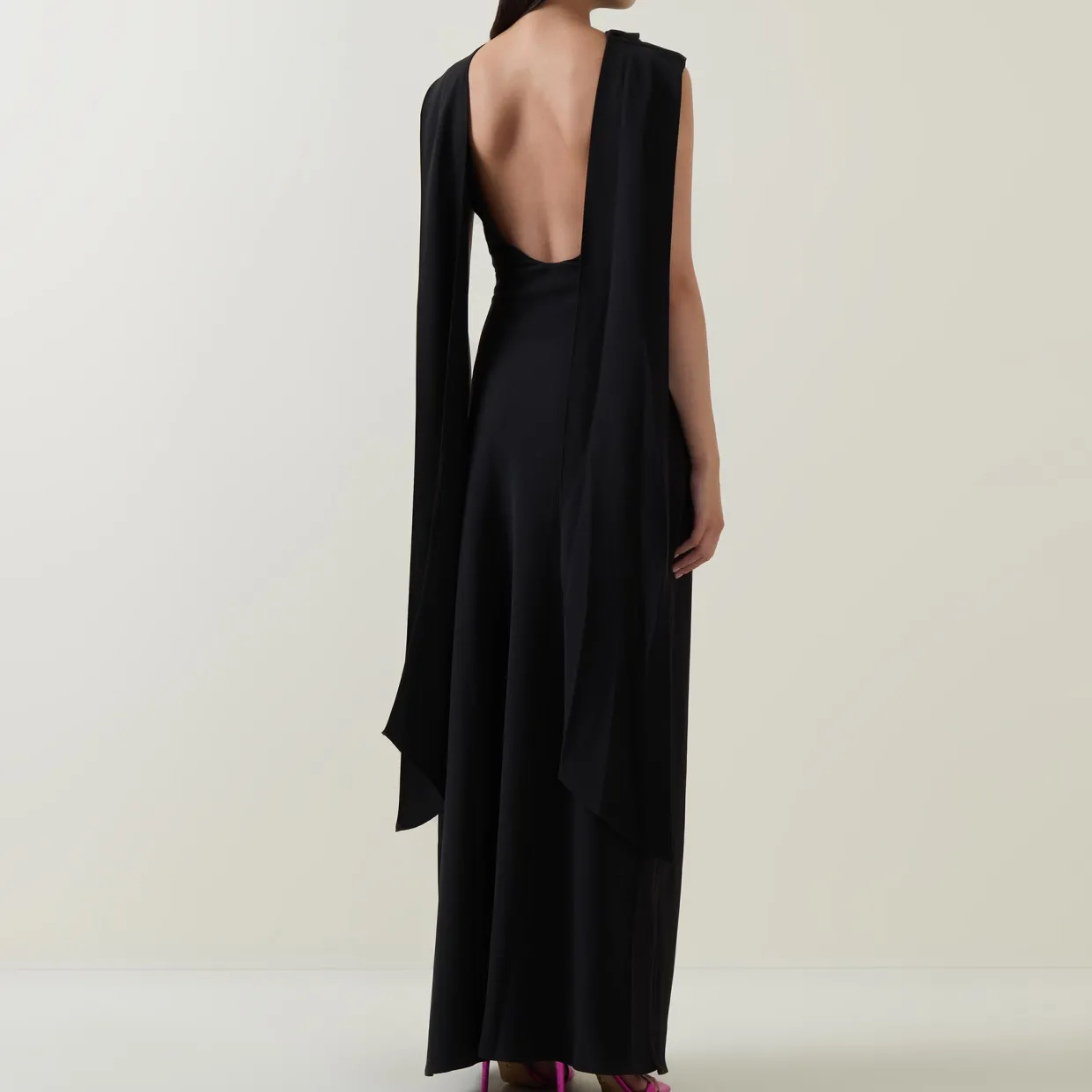 - High cowl neckline, draped details at shoulders, low scoop back, discreet side zip fastening, no stretch fabric, sleeveless, maxi length
