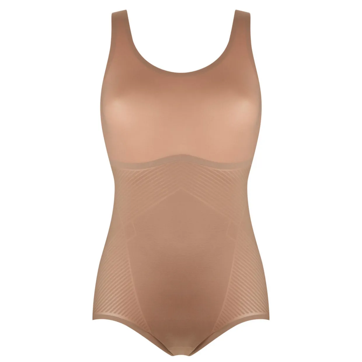 - Wide straps, scooped neckline, non-compressive bust fits any size, breathable and lightweight fabric for total comfort, bonded edges for a smooth transition to skin and no digging, quick-dry for added comfort, Printed Power®, made with Lycra® FitSense™, offers lightweight targeted tummy shaping and wraps around for added side support