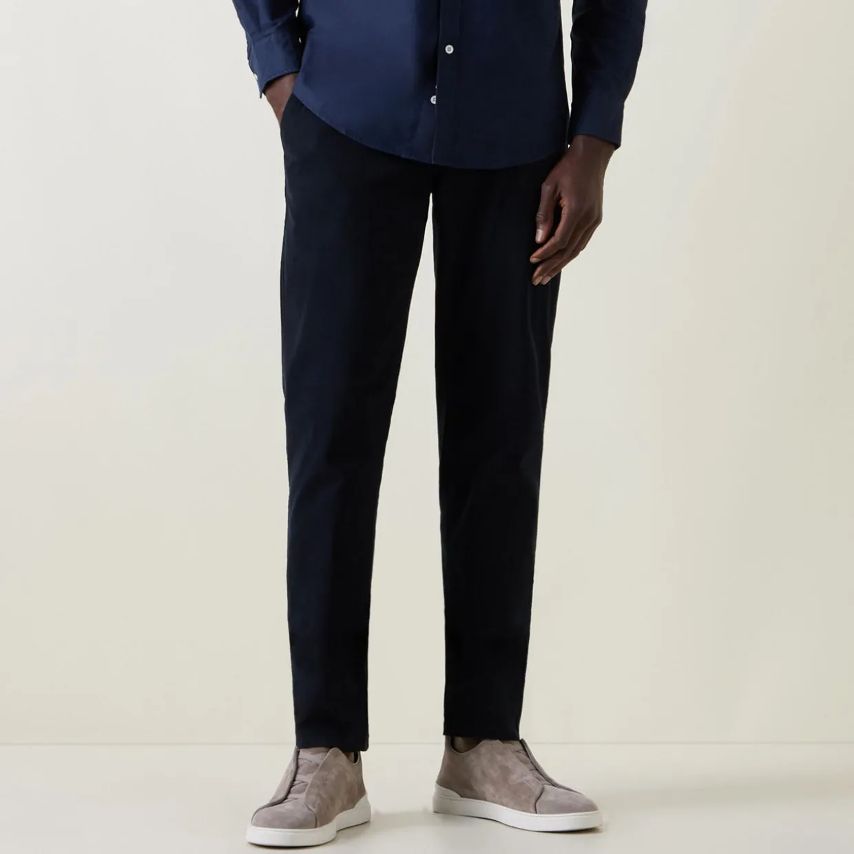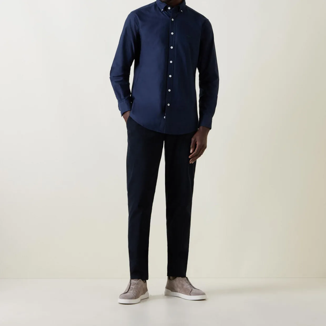 - Button and fly zipper fastening, belt loops, side entry pockets, rear pockets, logo badge