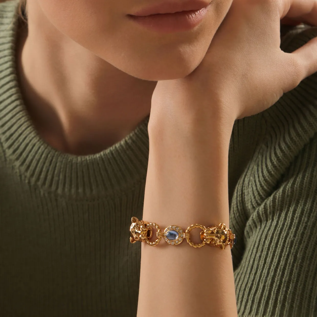 - Adjustable length, lobster claw clasp, 14k gold plated, protective anti-tarnish layer, tiger head details, crystal stone settings, presented in a branded gift box