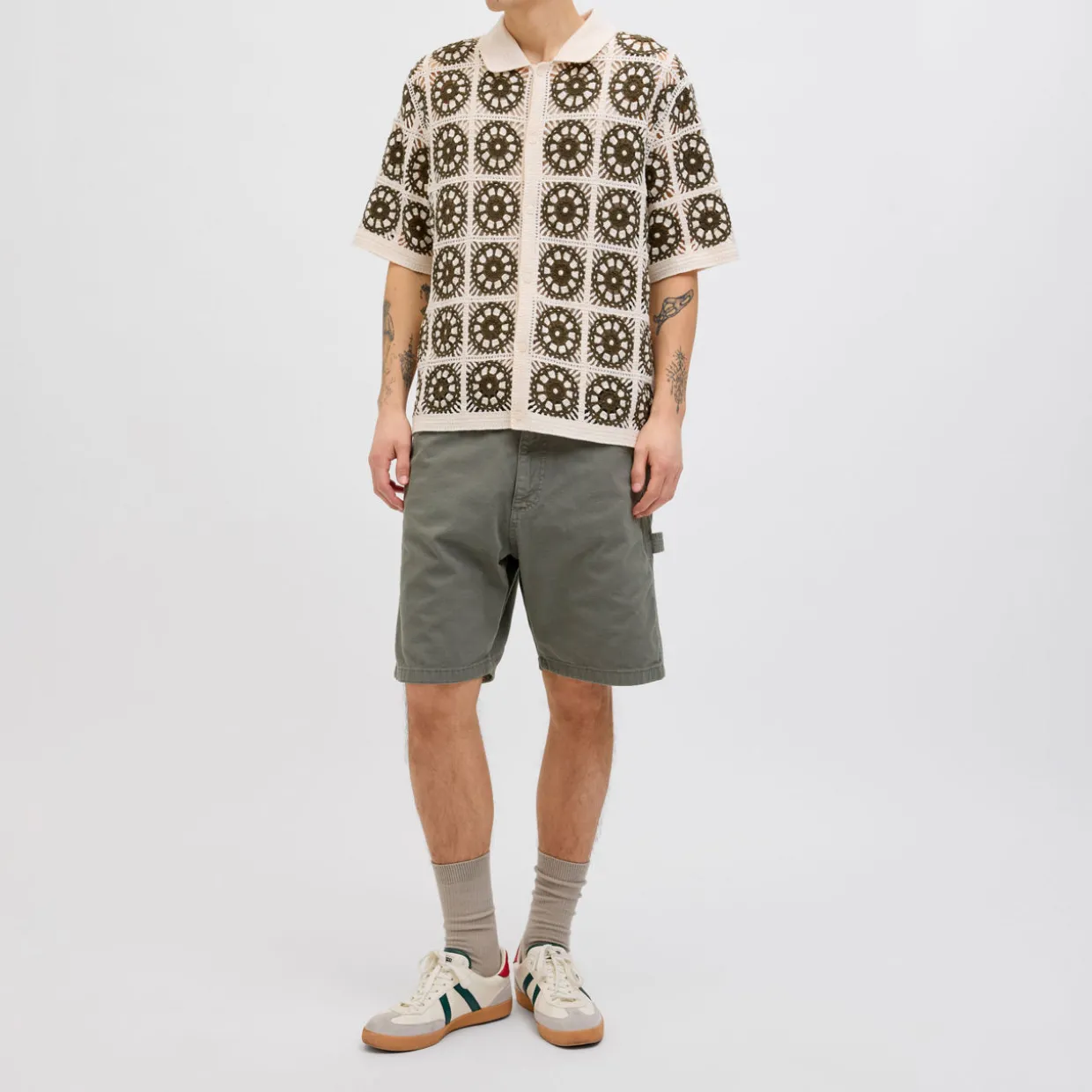 - Button and fly zip fastening, belt loops, side entry pockets, rear pockets, loop detailing, strong canvas fabric, loose thigh