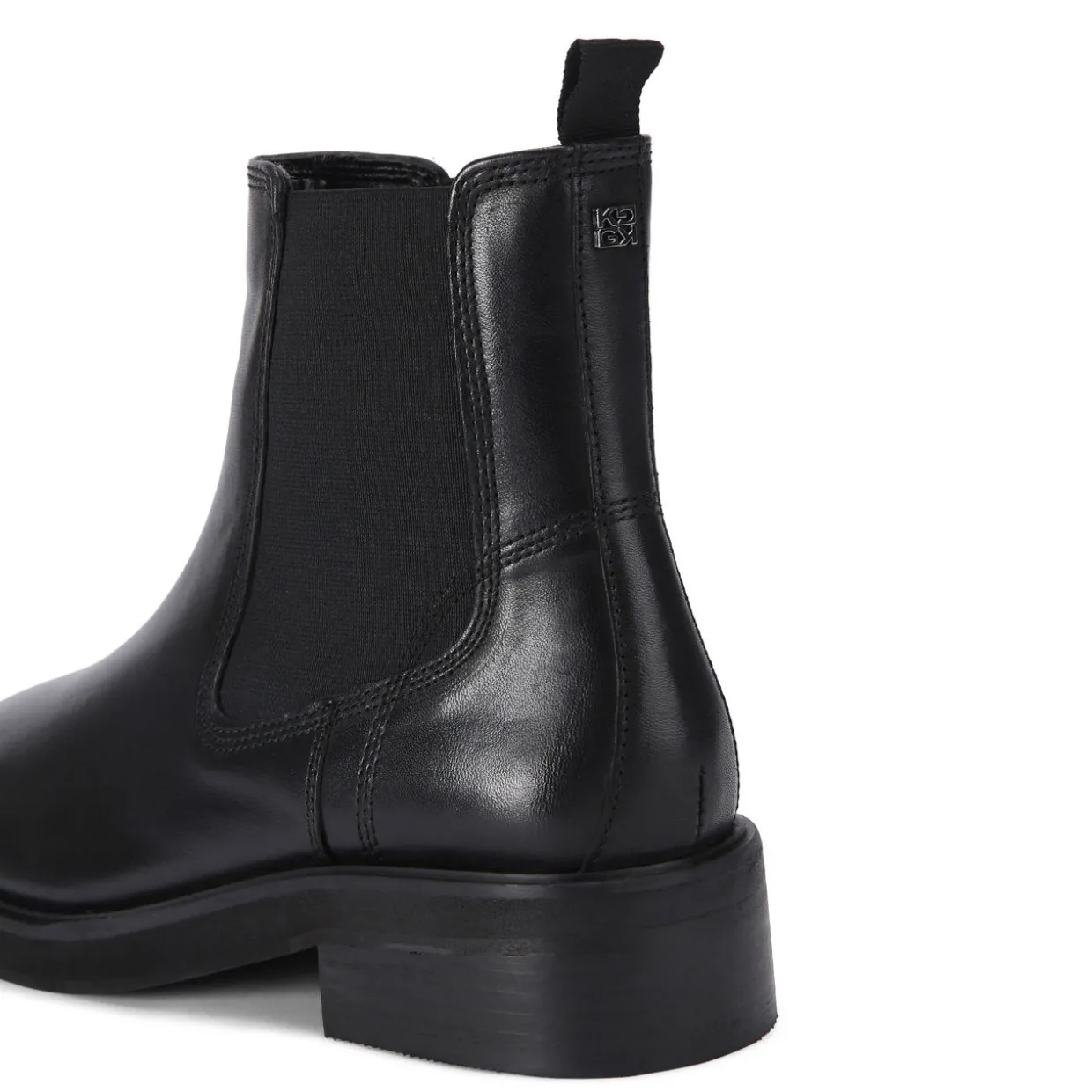 - Almond-shape toe, elasticated side panels, low block heel, pull tab at back, logo details