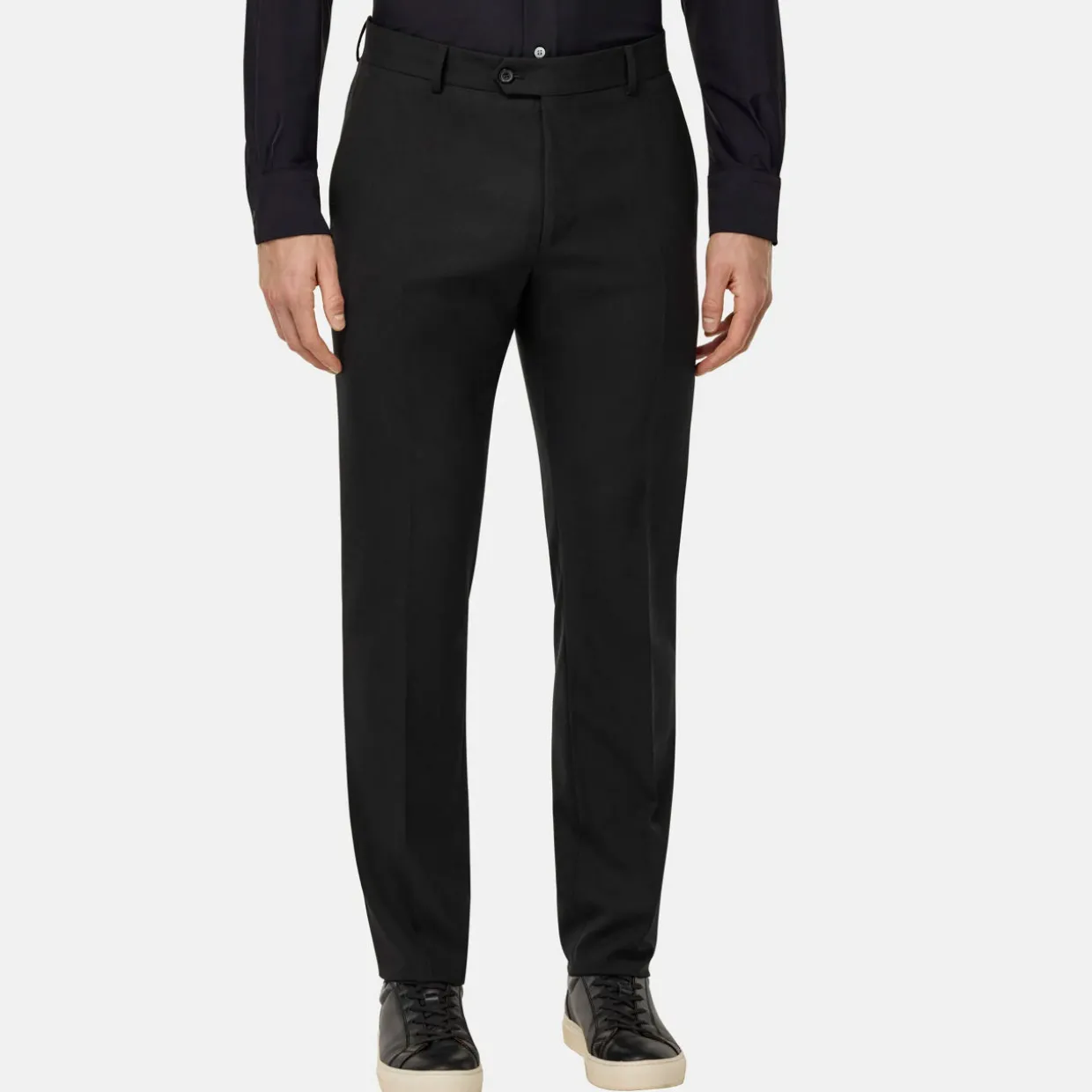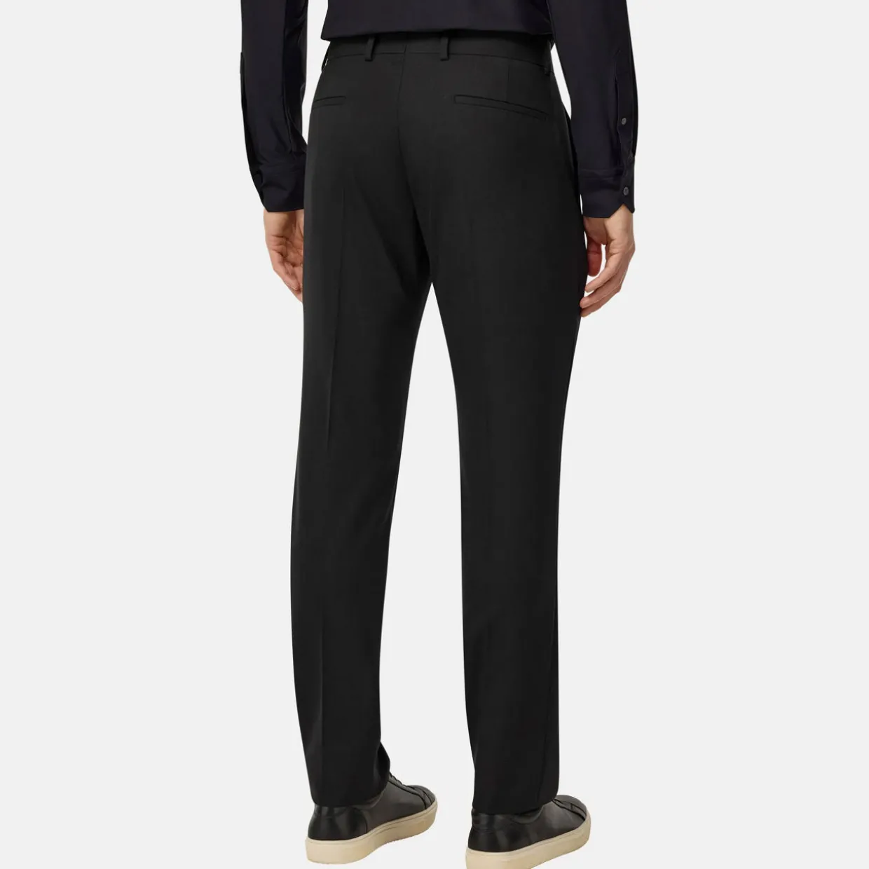 - Pure wool from the Italian wool mill Cerruti, belt loops, concealed fly, button fastening, side pockets, back pockets