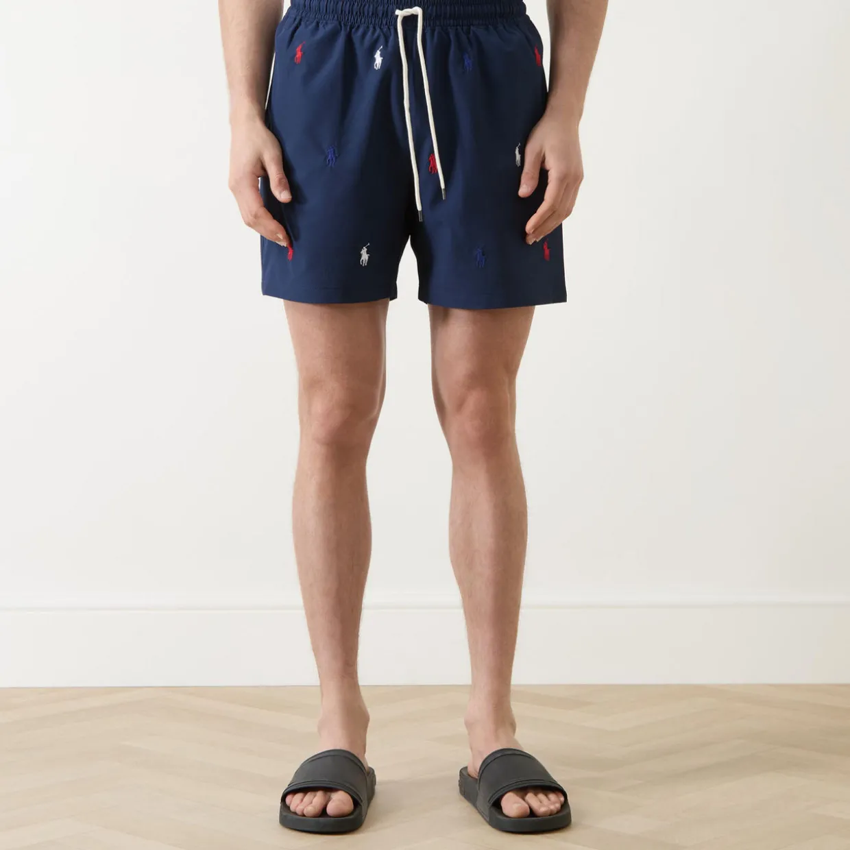 - Elasticated waist, drawstring fastenings, polo player logo, side pockets
