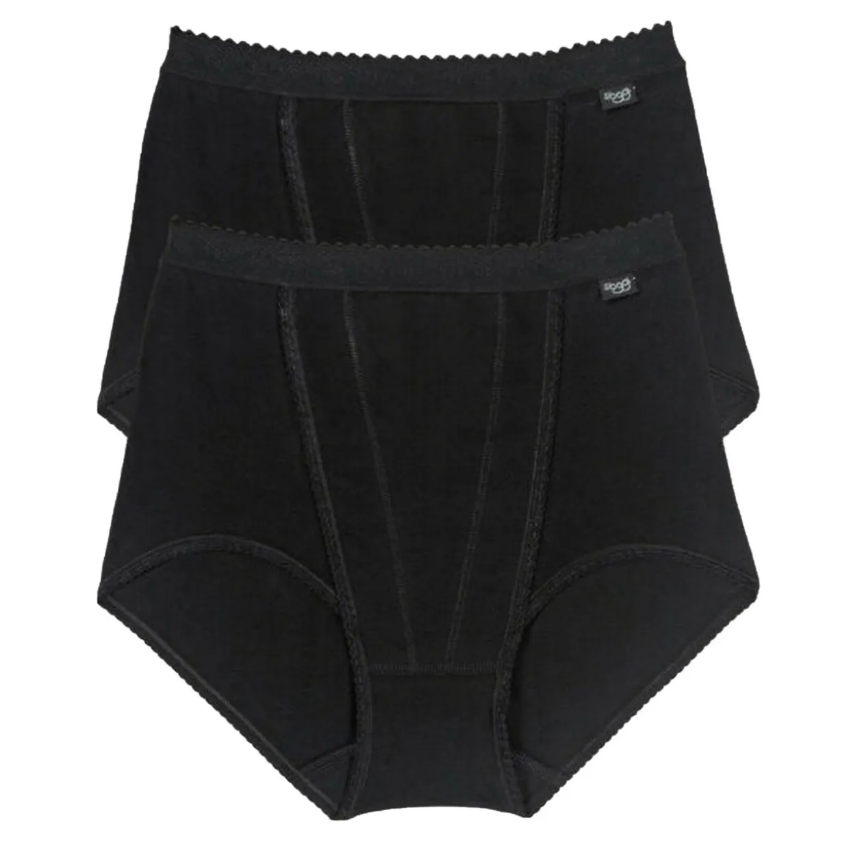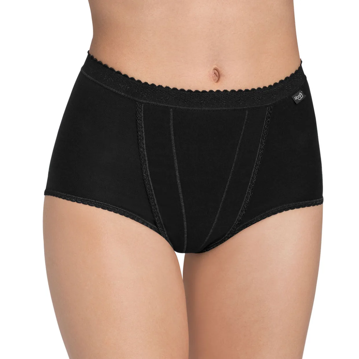 - High rise, full coverage, elastic waistband with scalloped trim, logo detail at hip