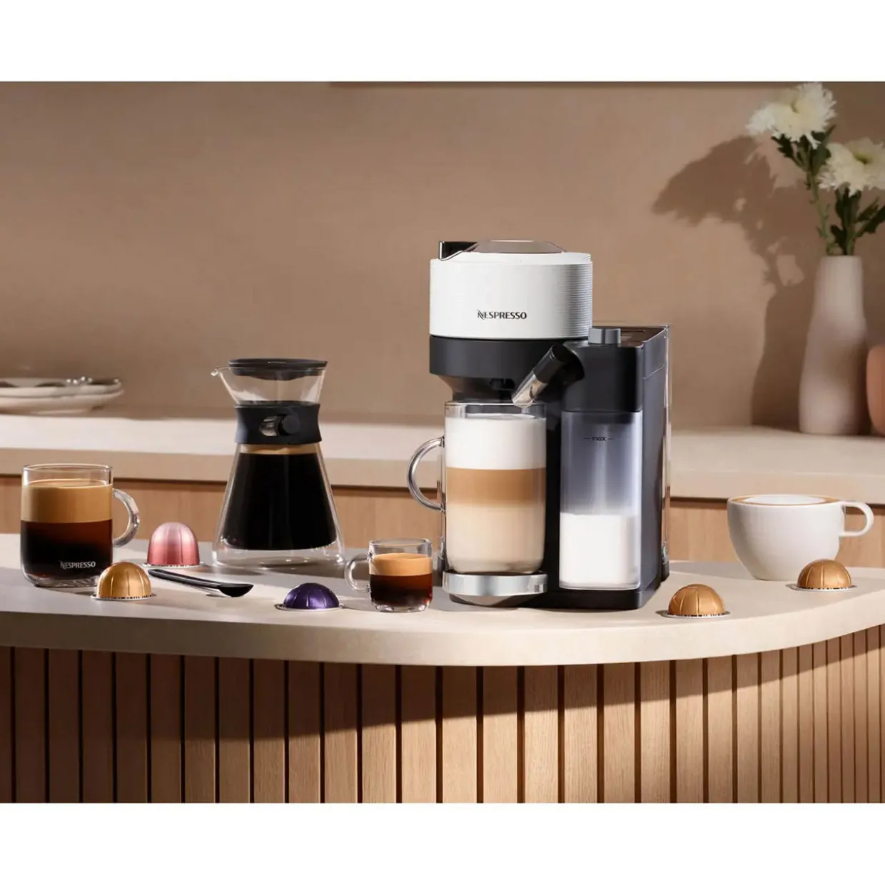 - The Nespresso Vertuo Lattissima offers a full range of coffee pods, from an intense Espresso and Carafe to Latte and Cappuccino, all at the touch of a button and with a smooth crema.