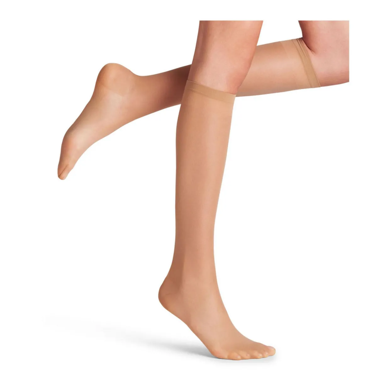 - Even matte mesh structure, semi-opaque, shaping effect, knee-high, medium compression, cuff with silicone thread, transparent, blockcolour pattern