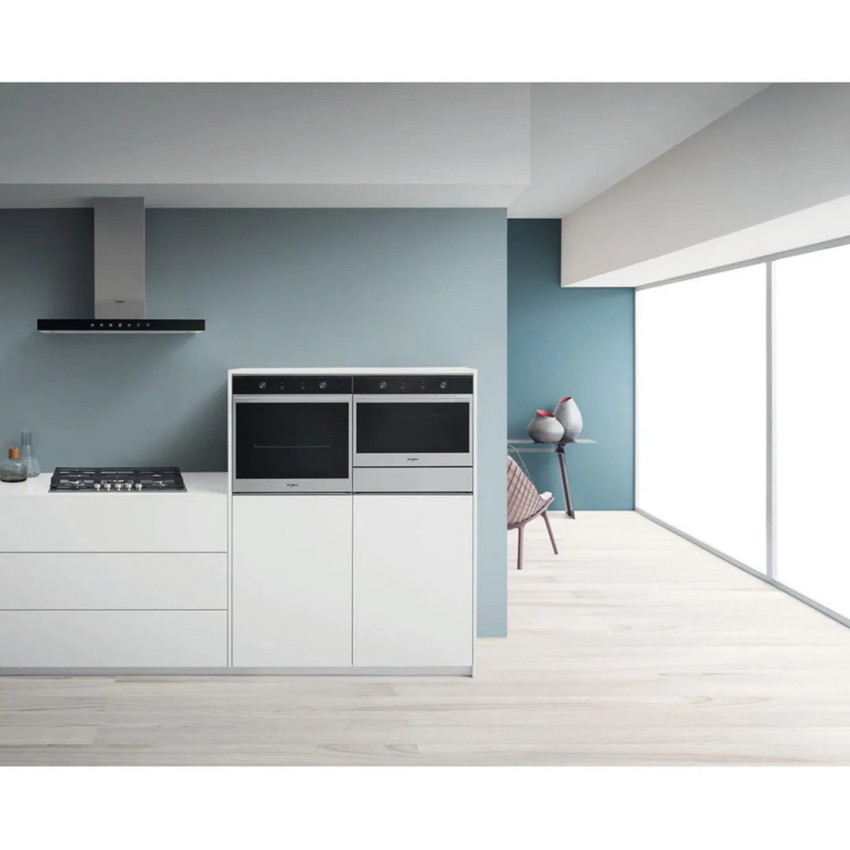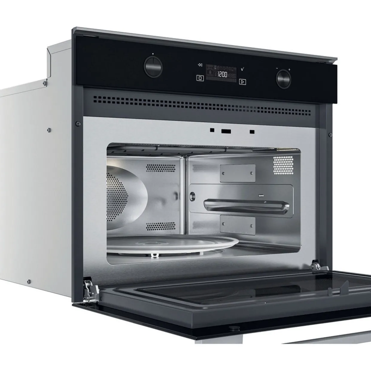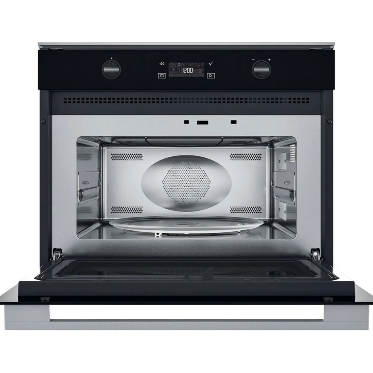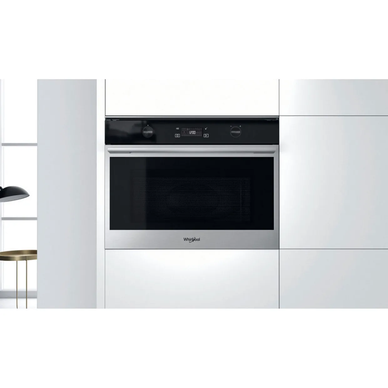 This Whirlpool built-in microwave features: stainless steel colour.Exceptional internal dimension.Combined technology, to have the cooking flexibility of traditional ovens.Exclusive 6th SENSE technology that automatically adjusts time, temperature and energy consumption during preparation.Crisp function, for an incomparable crunchiness of your flans, pizzas and cakes.
