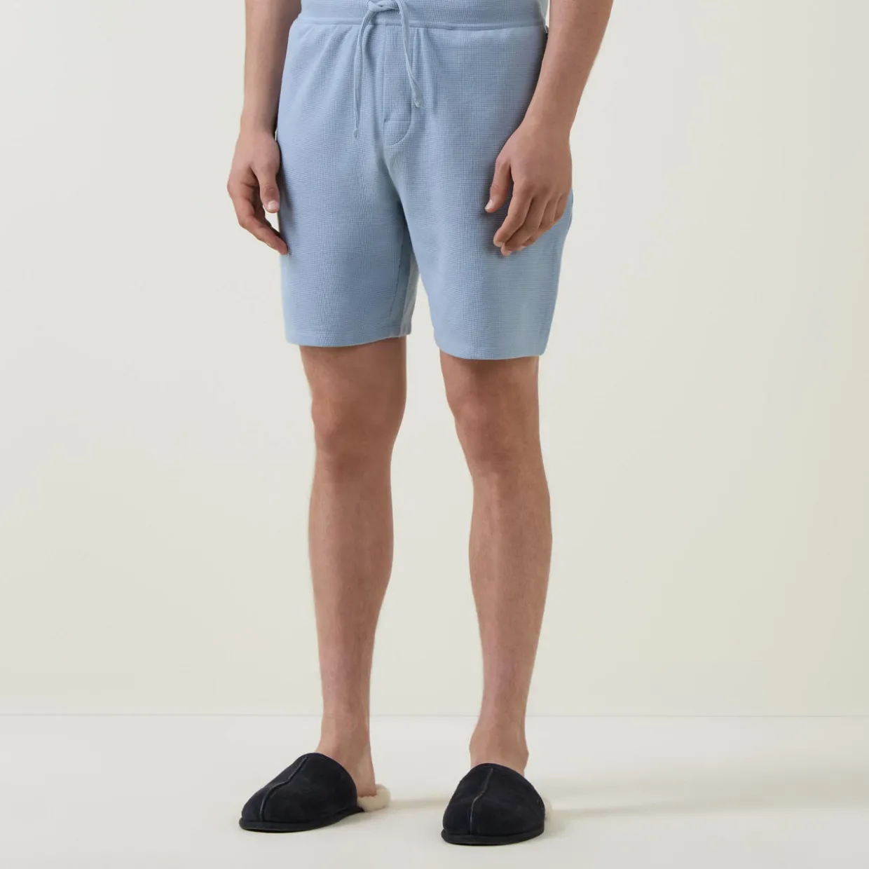 - Mid-rise, slim leg, elasticated waistband, adjustable drawstring fastening, two side entry pockets, clean hems, contrast logo detail, waffle textured finish