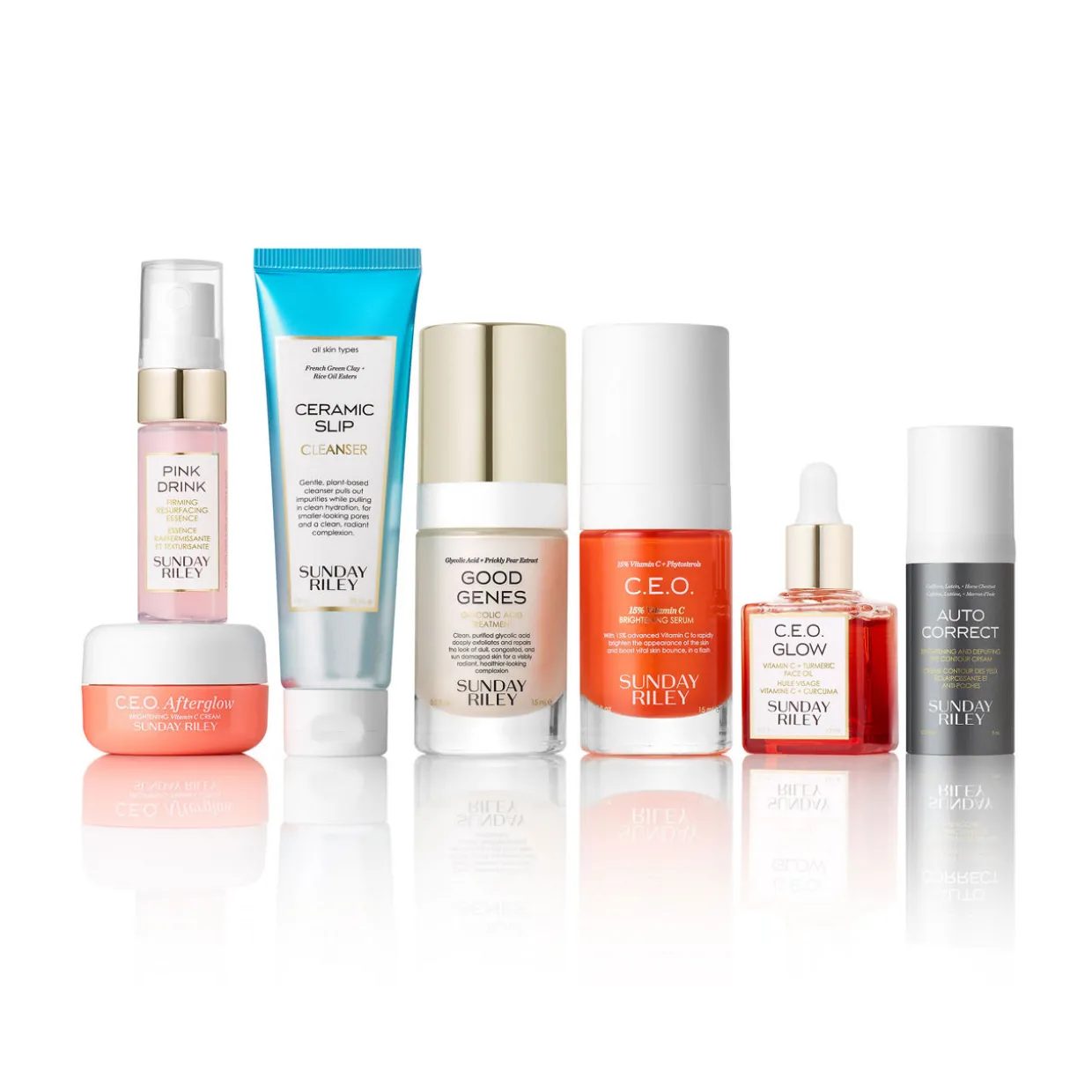 A complete morning routine (including a free Pink Drink Essence & C.E.O. Afterglow Brightening Vitamin C Gel Cream) with all our must-haves for glowing, radiant skin! KIT INCLUDES: Ceramic Slip Cleanser (1 fl oz / 30 ml) Pink Drink Essence (0.3 fl oz /10 ml) C.E.O. 15% Vitamin C Brightening Serum (0.5 fl oz / 15 ml) C.E.O. Glow Vitamin C + Turmeric Face Oil (0.34 fl oz / 10 ml) Good Genes Glycolic Acid Treatment (0.5 fl oz / 15 ml) C.E.O. Afterglow Brightening Vitamin C Gel Cream (15g mL/0.5 fl oz) Auto Correct Eye Cream (0.27 fl oz / 8 ml)