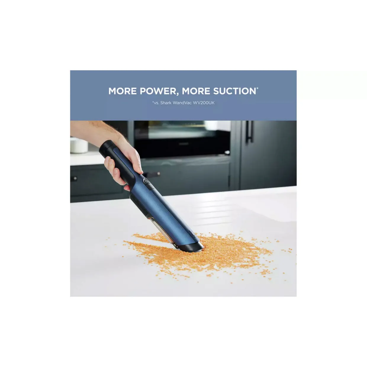 Power in the palm of your hand. Discover the next generation of quick clean-ups with the powerful Shark WandVac 2.0, engineered with a high-efficiency motor to deliver more power and more suction (vs. Shark WandVac WV200UK). Sleek, slim and lightweight at just under 700g, simply grab-and-go for quick clean-ups all around your home – from crumbs on the kitchen worktop to pet hair on the sofa.