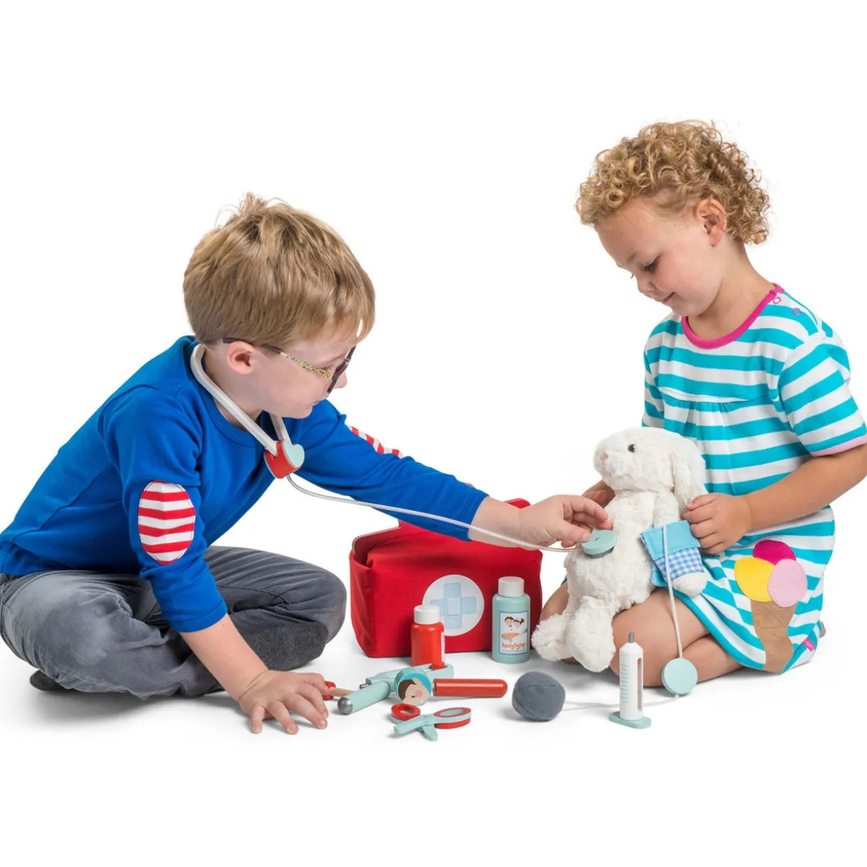 - Includes bag, stethoscope, thermometer, syringe, blood pressure gauge, ear scope, reflex hammer and scissors