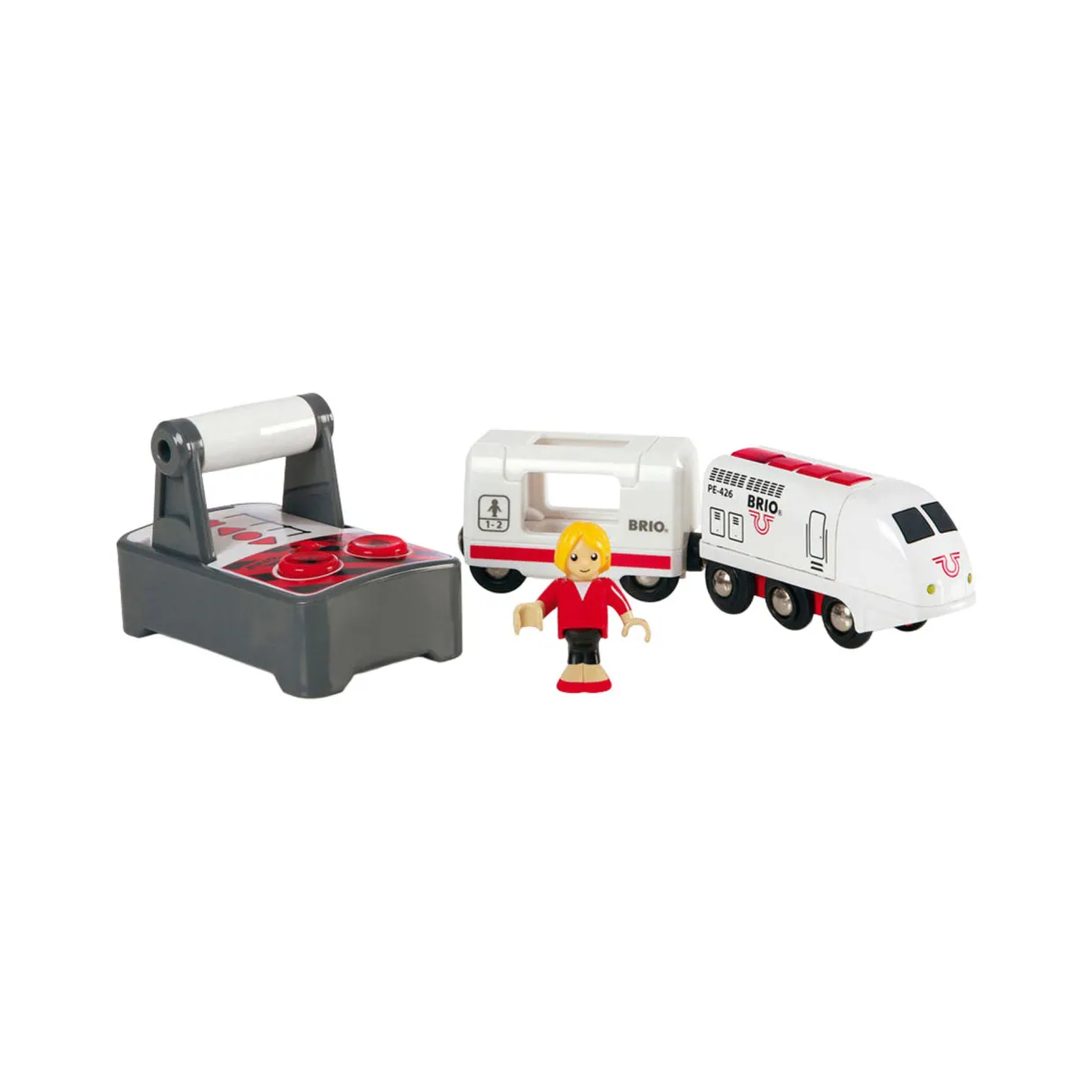 - Four pieces total, one remote control, one play figure, one train, one carriage, sound and light effects