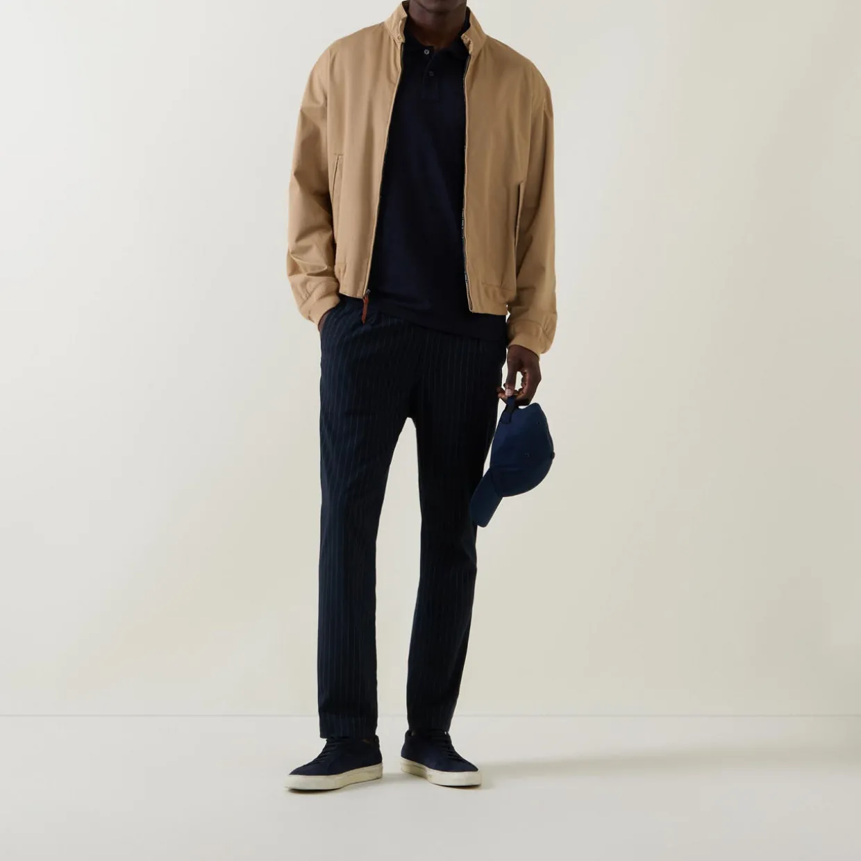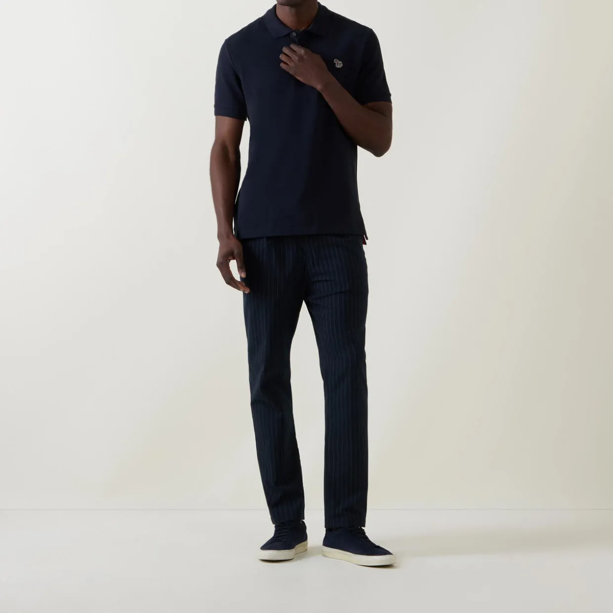 - Polo collar, two-button placket, short sleeves, rib-knit cuffs, straight hem, side slit detailing, Zebra felt logo on the chest