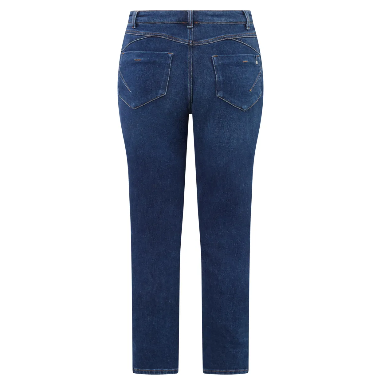 - Button and fly zip fastening, belt loops, five-pocket style, slit hem, stretch-fused fabric